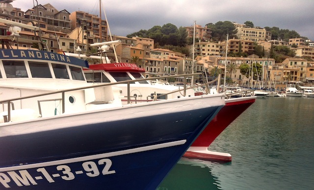 On the northwest side of Mallorca sits the port town of Sóller, with its stony houses clinging to the rocky coast, and it is balanced on the edge of old world beauty and modern tourist trap. For the most part, the local municipality has so far managed to preserve, probably by accident, a refreshing display of coastal village life. Despite the obvious, sentimental old-looking things, like the train from Palma, heaving with hanging cameras and bored faces, Sóller can’t help but enchant the visitor when its not trying. Its horseshoe-shaped bay and promenades filled with obscenely pleasant eateries, the marina, and its labyrinth of small streets all conspire to charm even the most jaded traveler. There are yachts pulled up to stone quays stern-first; chatting people sitting on terraces under tilted sunshades; another high-profile lighthouse at the edge of the bay; palm trees; and wooden fishing skiffs that never seem to leave their moorings. The mouth of the marina is a channel of churning water, and sailors in transit slide in on boats, lines in hand and looking to stock up on supplies. In times like these, I encounter again the strong pull to the sea and a craving for seafood.