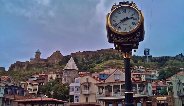 My landlady unlocked the rusty gate. The stairs descended down to my new apartment in Tbilisi, Georgia. It was five in the morning. The sky was painted in pastel colours above the Metekhi Church that peered above the carpet of vines covering the courtyard. Grape vines were everywhere; they crawled up the iron bars of our balcony, with tendrils curving around the nails sticking out of the wall, spilling over the corrugated iron roof, completely covering the terrace.