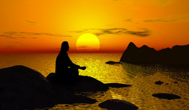 In a comfortable seated position, either legs crossed in Sukhasana (easy pose) or sitting on top of the feet with legs folded beneath you in Vidrasana (diamond pose), place the hands on the lap, palms face down if you would like to feel more grounded, or face up if you would like more energy. Close the eyes.
