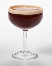 Stirred and strained into a cocktail glass. Garnish with a lemon twist.