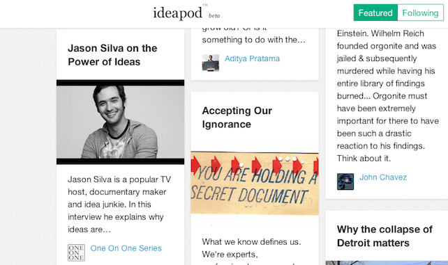 Ideapod is engaging, and it has potential to accomplish what its founders intend. The challenge, like any new venture on the web, is to build users and user-engagement, an increasingly difficult task in the growing social media space. If they continue to attract interesting people—and interesting ideas—they just might have the right formula.