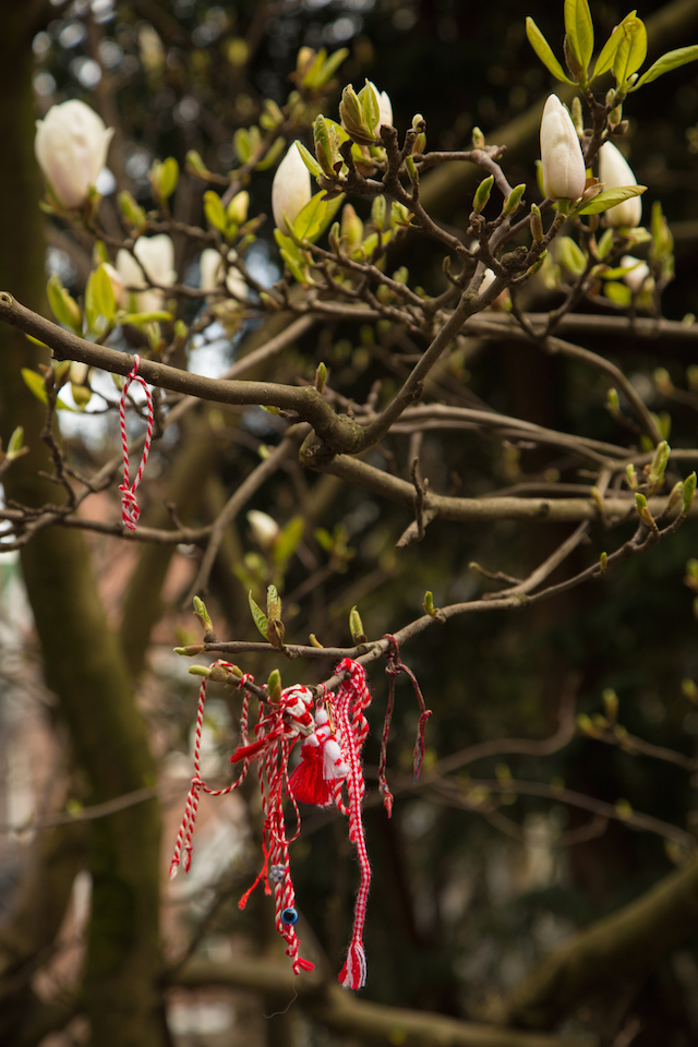 In Bulgaria, Baba Marta preempts the arrival of spring: on March 1, people give each other woven red-and-white figures–martenitsi–which they wear until they see the first buds or birds of spring, after which celebrants tie their martenitsi to trees in recognition of the coming of spring. The holiday celebrates Baba Marta (“Granny March”), a woman whose smiling arrival heralds the end of winter; in some tales, the final snow of the season is actually Baba Marta shaking out her feather bed in the midst of her spring cleaning.