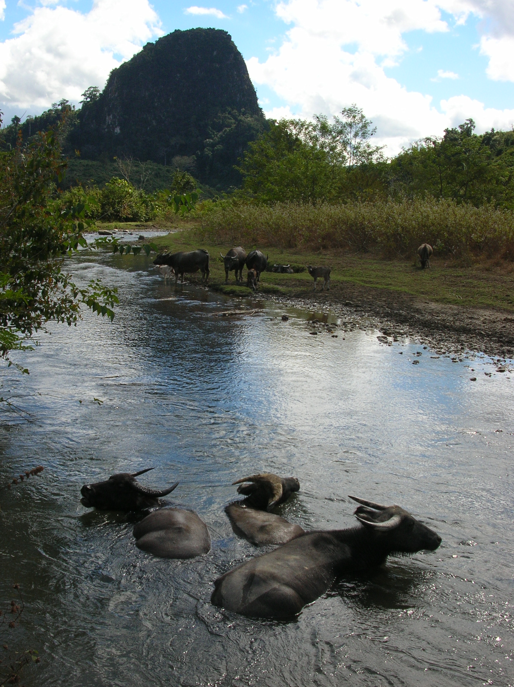 From Muang Ngoi you can walk an hour to some nearby caves. The caves are deep enough to go into, but not deep enough to get lost in. Walking past the caves and for another hour or so you can visit a village. Along the way you’ll see flowing streams, rice fields, cows and buffaloes, trees and sky. It is a great landscape to wander through.
