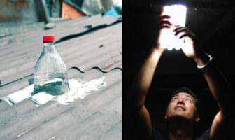 Liter of Light is the latest project launched by the MyShelter Foundation, an organization dedicated to bringing low-cost, innovative green technology to rural communities with limited resources. Using a technique created by MIT students and Alfredo Moser, the organization brings to homes a simple plastic bottle that when filled with water and chlorine, and activated by sunlight (through the process of refraction) produces the same light as a 55-watt bulb.