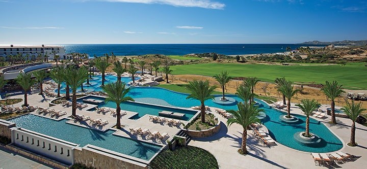 If it’s spa treatments and a couple rounds of golf that you’re after, Secrets Puerto Los Cabos is the place to be. Like Marquis Los Cabos, the resort is all-inclusive and adult only with unlimited access to breakfast, lunch, dinner, snacks and drinks. Reservations are never required and culinary options include Asian, traditional Mexican, fresh seafood, gourmet Italian and an international buffet. The Spa by Pevonia offers indigenous treatments as well as traditional treatments including massages, facials, manicures, pedicures, aromatherapy and a hydrotherapy pool circuit. After a day of pampering, you can enjoy live music, dancing and entertainment every night.