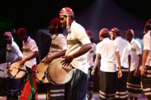 Boduberu is a popular form of folk music and dance native to the Maldives and dating back to the 11th century. Similar styles of music can be found in east and southwest Africa. Boduberu groups most commonly consist of 15 to 20 members with roughly three to four drummers and one lead singer (the rest act as a chorus). The way boduberu music unfolds is that as the song builds and rhythm picks up, chorus members who feel inspired to dance will leave the line up and move to the front to express themselves however they feel inclined. Typical dance is very high energy–often frenzied, and dancers are known to go into trances. Since the music is commonly sung during festive occasions, spectators are also encouraged to join in. Check out the video below of Harubee, a popular Maldivian band that performed at this year’s RWMF.