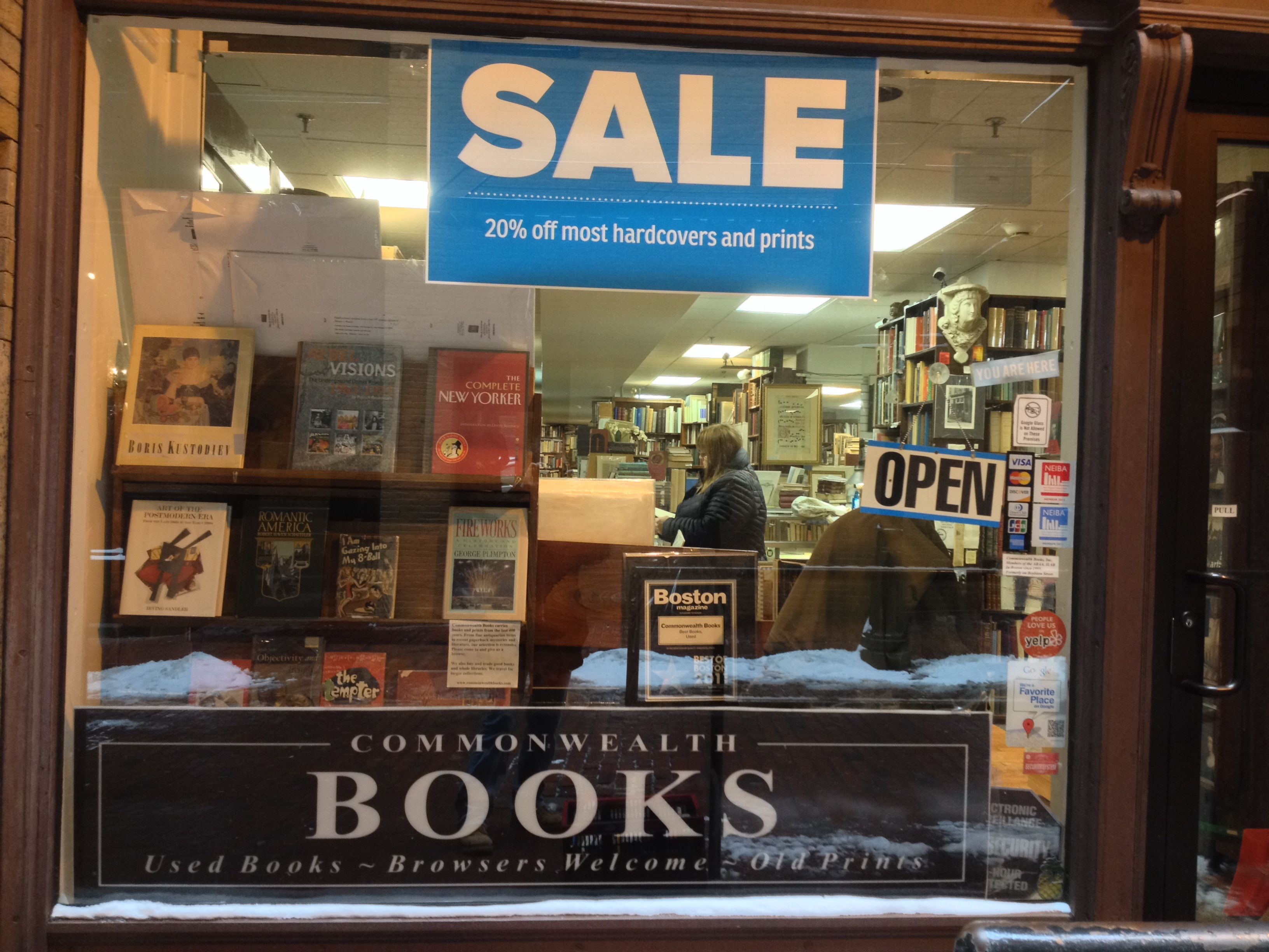 Commonwealth Books is in Downtown Crossing. The mid-size shop is cramped with a massive selection of used volumes. It boasts a location on the oldest street in Boston, though the store has not been there since 1630.