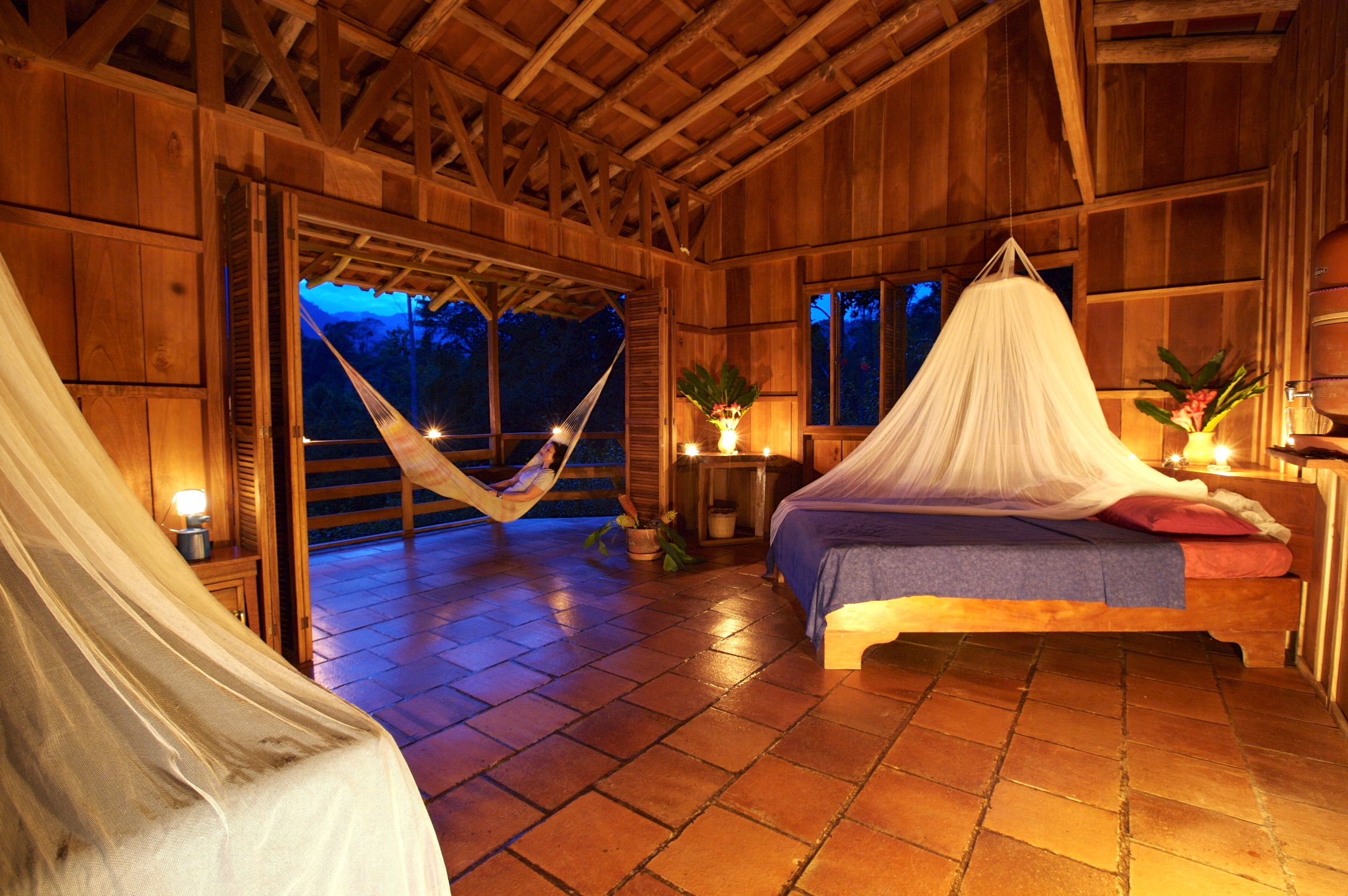 The only way to reach Santa Juana (other than hiking 18km) is to drive up a steep, potholed road with river crossings and rickety bridges–but it’s worth it. Sitting atop the Fila Chonta Mountains, travellers are rewarded with jaw-dropping views of the rainforest below, extending all the way to the Manuel Antonio coastline. The focus here is on supporting the local environment: each spacious casita has been built from 85% harvested timber, and a slice of your reservation is donated to Santa Juana’s tree adoption program. Tearing yourself away isn’t easy, but when you do, hike a trail to River Rodeo’s waterfall for a refreshing swim or visit the local sugar mill and watch oxen crush fresh cane into sticky pulp. However, most swing in a hammock and watch exotic birds dart from the trees, including Costa Rica’s poster-boy, the Yellow-throated toucan.