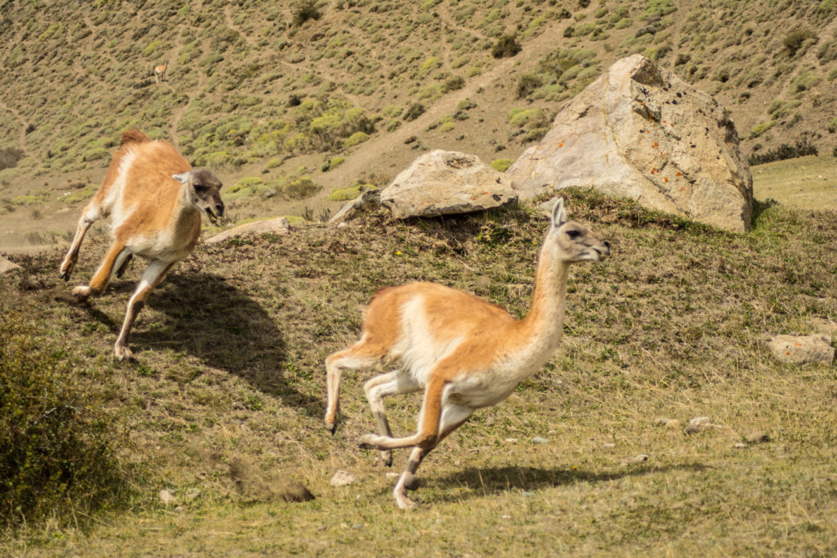 Like their safari cousins, Patagonia has its own Big Five to spot. The first of these is the guanaco, a member of the camelid family that has never been domesticated (unlike the llama, for example). These are what I am seeing now, darting this way and that in a way that sometimes verges on comical, and other times fluid and graceful. Female guanacos live in groups of about ten, with just one adult male, while the bachelors roam in huge herds, sometimes numbering up to 50 individuals. Shockingly, these graceful animals suffered a decline of 95% after the Europeans arrived in South America, despite being one of the most adaptable animals in the world with the ability to survive on poor quality grasses, fierce snow and wind.