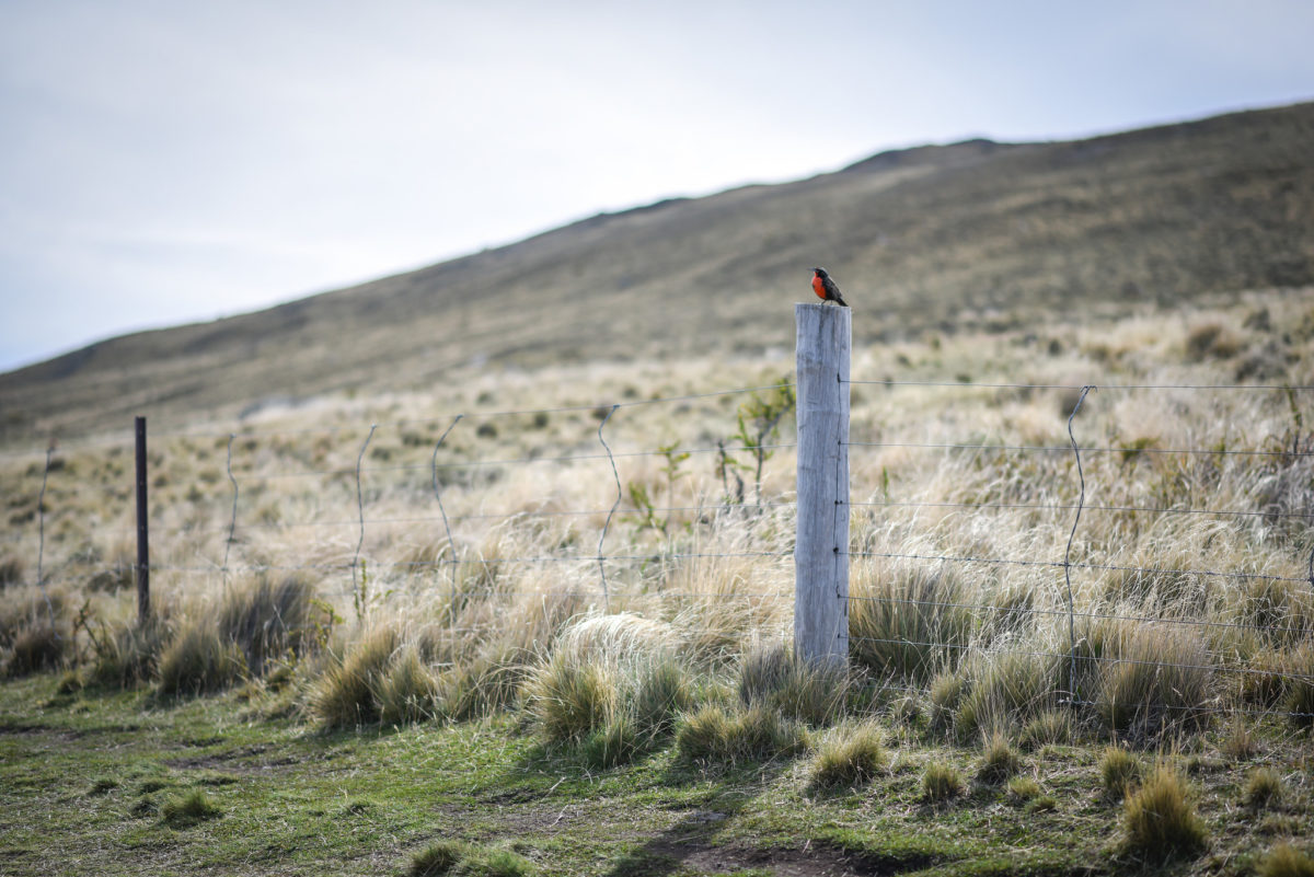 This place is a twitcher’s paradise, an ornithological haven home to some of the most abundant bird species you can find in Chile. Trees are home to parrots, woodpeckers, Magellanic Horned Owls, while the Patagonian Sierra Finch passes through the Steppe each Autumn. In the sky, near the mountains, I spot a Chilean Blue Eagle, actually a dark grey with white underparts that has a tiny tint of blue. A highlight for me was seeing the Long-Tailed Meadowlark, or loica, a beautiful small bird with a bright red chest. The Loica is a part of Chilean history, cropping up in the diaries of Spanish colonizers as well as in the legends of the indigenous Mapuche people.