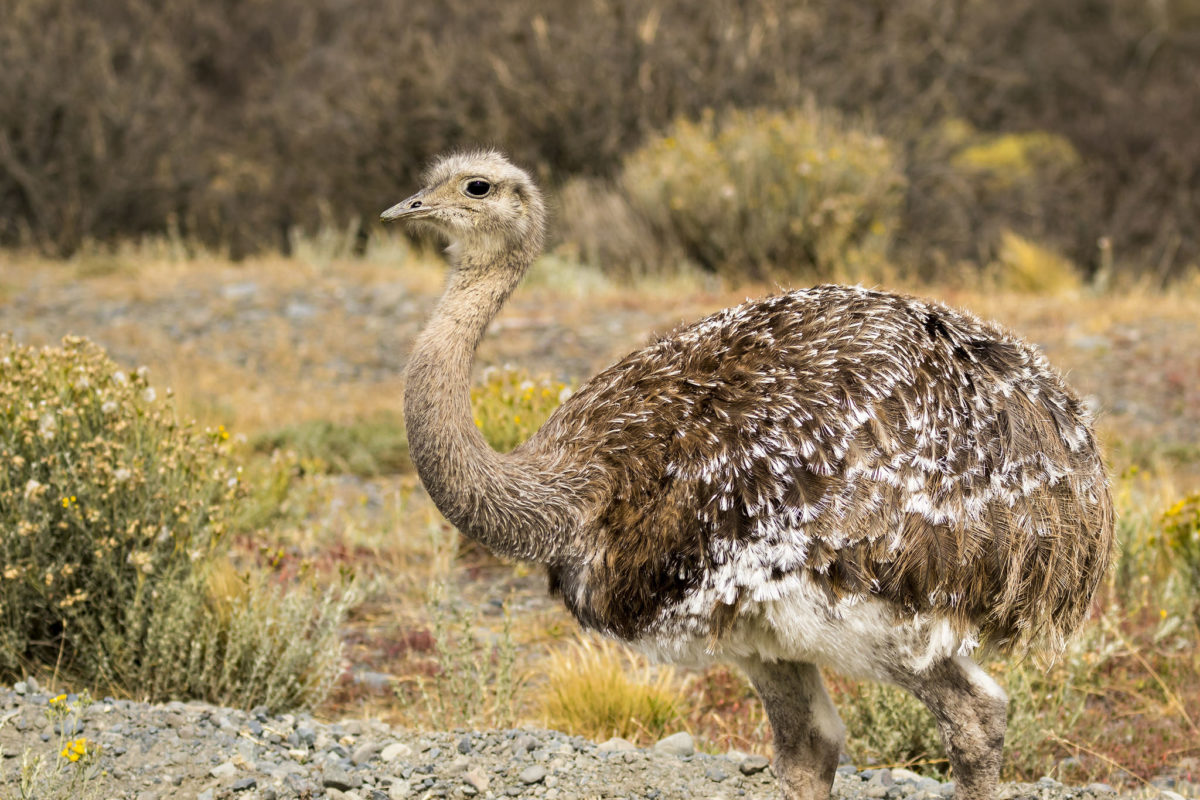 It is in the grassland environment called the Patagonian Steppe where my small group comes across a bird standing about a metre tall. Darwin’s Rhea (known locally as the ñandu) is related to the ostrich, is one of the fasted creatures in the world and is absolutely gorgeous to look at with angelic eyes, long legs and a huge fluffy rump. We see about five or six of these from a distance before they move on, leaving us to marvel at the other bird life and, once again, at the wind that has resumed its tug at my hair.