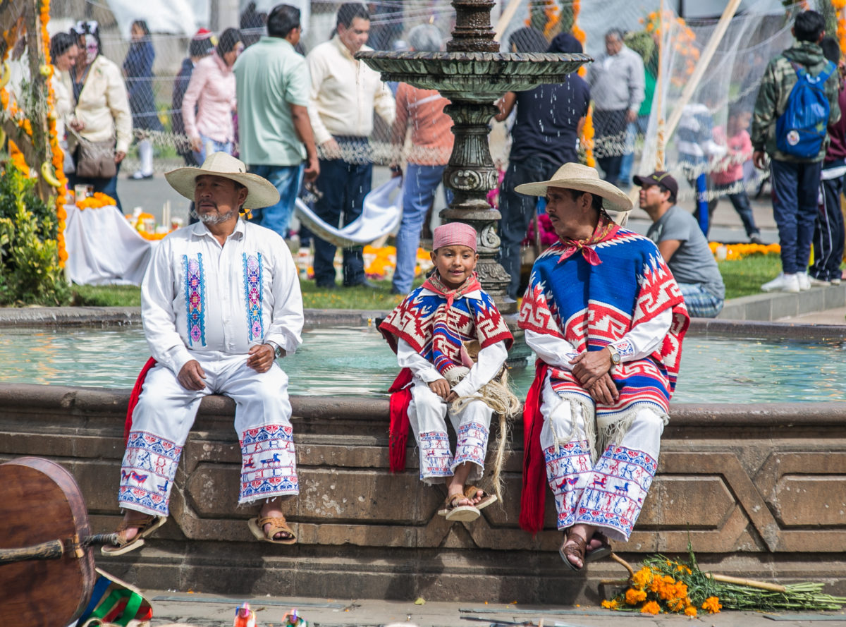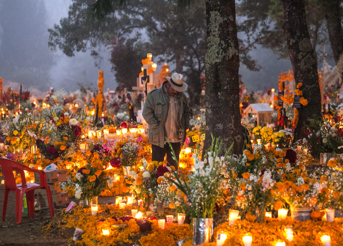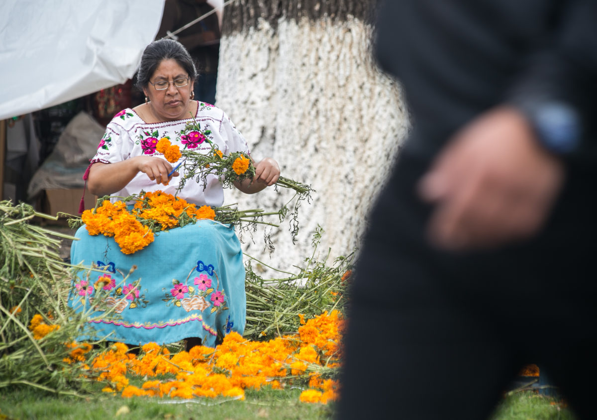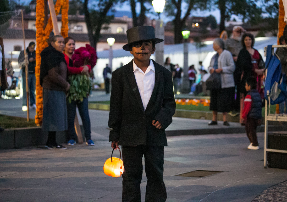 By now thousands of marigolds have been meticulously placed in every nook and cranny, twilight has set in, and the warm glow of candles illuminates the city center. With the evening festivities well underway, the only masks and costumes are on children or wandering tourists. Here, Mexico celebrates differently.