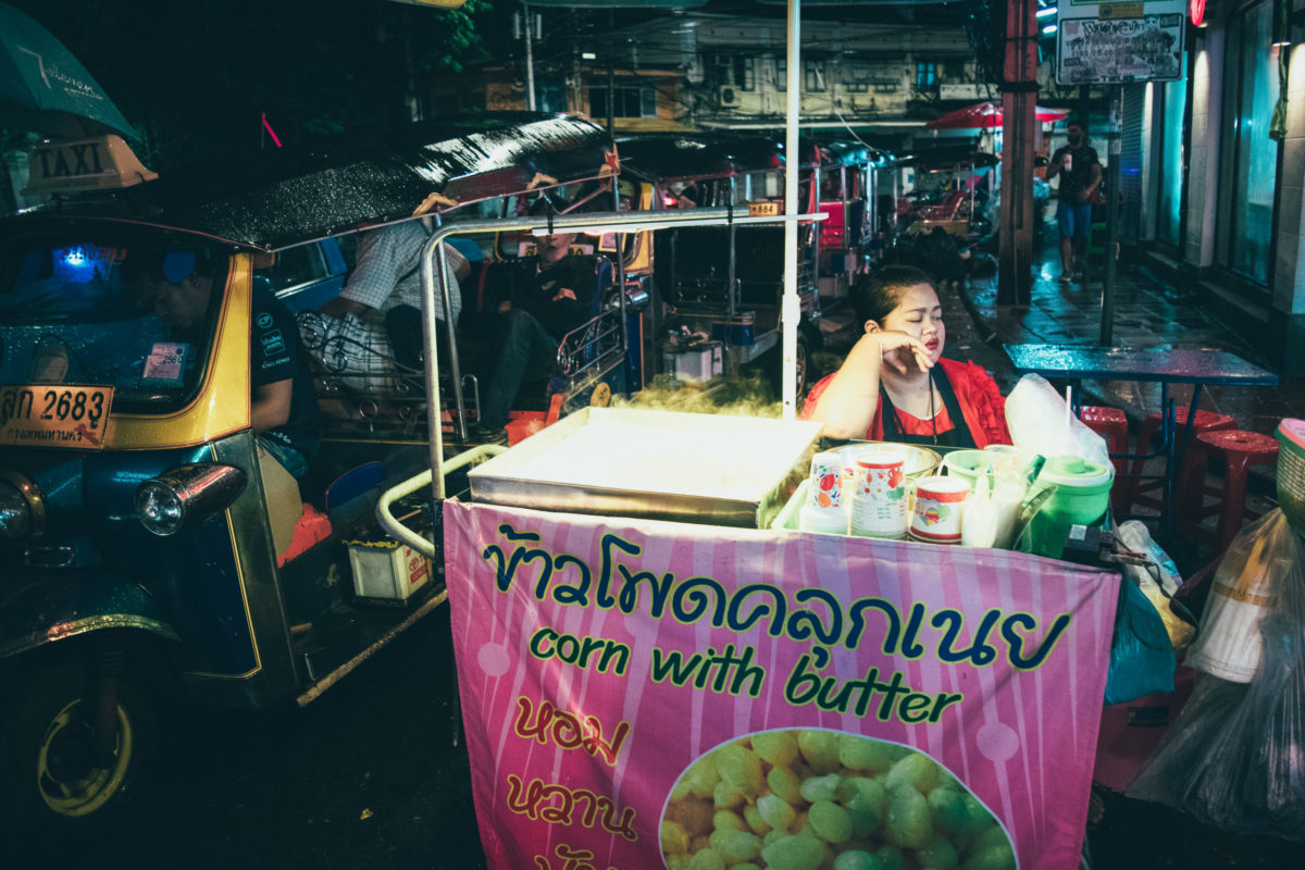 Raindrops started to form on the window as the car rolled slowly through traffic in Bangkok. When we finally pulled up to the curb, we were met by what looked like a Thai version of the Las Vegas strip, except condensed and filled to the brim with wandering bodies. The rain continued to pour, but that did not stop the crowd of locals and tourists from flooding the bustling road. I was glued to the pavement, awestruck by the scenes I was witnessing.