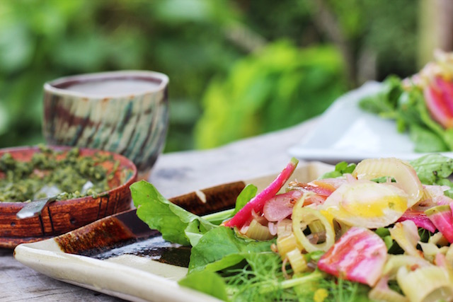The willows were whistling when we arrived, their spindly fingers combing the cool ocean air as it drifted up the mountain and settled into a gauzy mist. We sat quietly beneath them, dipping golden breadfruit chips into ceramic bowls of emerald chimichurri and a scotch bonnet sauce perfumed with coconut oil, garlic and ginger. Hummingbirds hovered at a nearby banana blossom, as if they, too, had reservations for lunch.